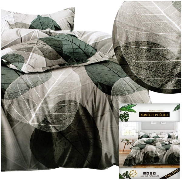 Excellent color reproduction and modern patterns are characteristic features of Dalwin bedding. Lovers of unique motifs will appreciate their creativity, and fans of stylish colors will be delighted. The set, with its simplicity and elegance, meets the expectations of every customer. The presented model in shades of gray and green features large leaves.
