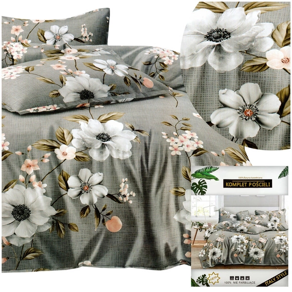 Excellent color representation and modern patterns are characteristic features of the Dalwin bedding. Lovers of unique motifs will appreciate their creativity, while fans of stylish colors will be delighted. The set, with its simplicity and elegance, will meet the expectations of every customer. The presented model features beautiful flowers on a gray background.