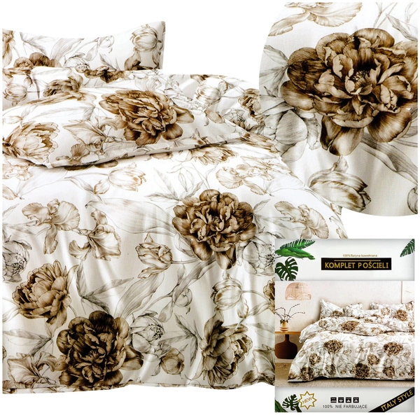 Excellent color representation and modern patterns are characteristic features of the Dalwin bedding set. Lovers of unique motifs will appreciate their creativity, while fans of stylish colors will be delighted. The set, with its simplicity and elegance, will meet the expectations of every customer. The presented model features golden flower buds.