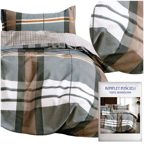 Bedding made of cotton satin is a high-quality material with a satin weave from cotton fibers, providing exceptional softness. This type of fabric is characterized by a delicate shine and is velvety to the touch. The high structure of the fibers allows for free air circulation, ensuring warmth in winter and cooling in summer. The natural composition ensures that our skin can breathe freely underneath. An additional advantage of the bedding is its ease of use, as it is not slippery and adheres very well to the duvet. The set in shades of gray and brown features a striped pattern.