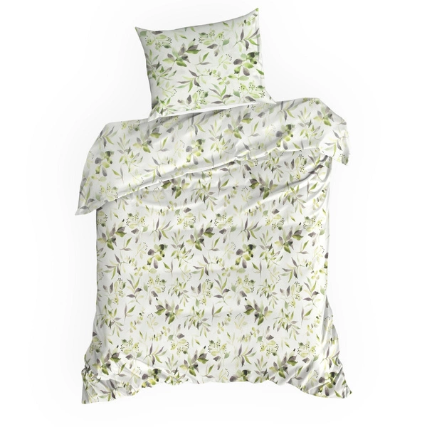 ❤️The Classic MILI cotton bedding impresses with its unique, timeless pattern of green leaves on a white background.❤️