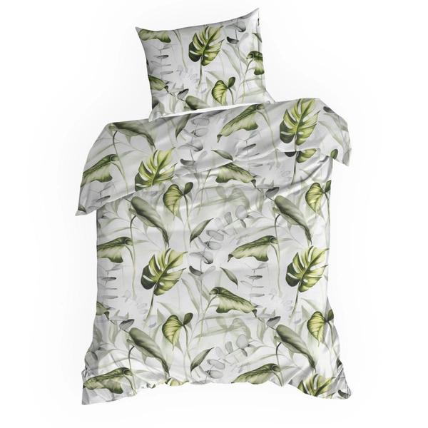 ❣️The Classic Ellen cotton bedding combines exotic charm with elegance – green monstera leaves on a light background create a unique, stylish pattern.❣️