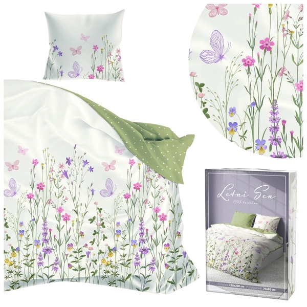 Double-sided bedding, Bedding composition: 100% Cotton, 1 pillowcase 70x80 Size tolerance: +/- 3% Can be washed at 40° The comforter cover and pillowcases are zippered