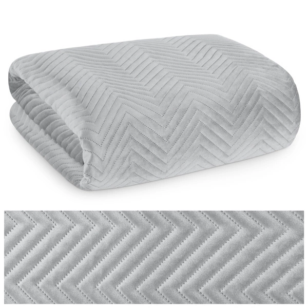 Tasteful one-sided bedspread. Made of soft velour. The cape is finished with an aesthetic trim and quilted using the hot press method - without using threads. With the help of thermo quilting any patterns are embossed, resulting in a permanently joined material of very high strength. Simple colors and form make it ideal for interiors decorated in different styles. The capa is lightweight and machine washable.
