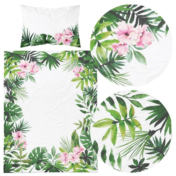 The bamboo bedding is made of eco-friendly fabric made of 50% cotton and 50% bamboo fiber, which is perfect for the baby's crib, as the whole set is very pleasant to the touch and does not irritate the skin. Thanks to the combination of cotton and bamboo, the bedding has thermoregulation and antibacterial properties. An additional advantage is the durability of the material. The set is fastened with a practical zipper which makes it easy to change the bedding. Wonderful patterns used on each bedding will make the toddler happier and the quality of the bedding will allow for a wonderful sleeping comfort. The bedding depicts a frame of green flowers and leaves.