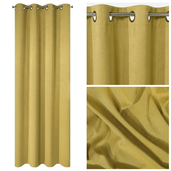 Rossie window decoration in mustard color. It shades well and protects from the sun's rays. Made of fabric with a solid navy blue color. It will complement your style at home. It hangs with grommets, which makes it easy to install and allows you to easily adjust the waves evenly throughout the curtain. Satin sheen will guarantee a pleasant atmosphere in the interior of your home.