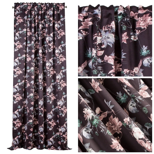The product has been sewn from soft velvet, which makes it ideal for home comfort. It features an elegant pattern of regular flowers on a burgundy background. Hanging it on a ribbon makes it easy to work with, but also allows you to arrange even waves on it, which look exquisite. Hung on a curtain rod, it will protect you and your family from the sun's rays and provide that all-important privacy.