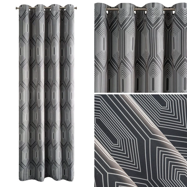 The soft fabric of the decoration is decorated with a beautiful gray color, on which white lines are printed, forming an interesting geometric pattern. Such a motif with color scheme will definitely work in any stylish arrangement, easily matching the other elements of the decor. The product gains functionality thanks to the grommets sewn at the top.