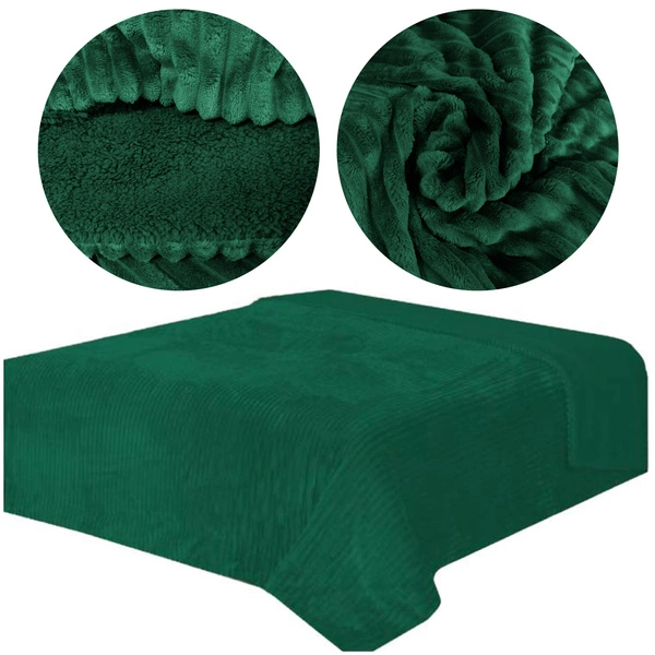 • Capri collection bedspread with a ribbed pattern in a dark green color.
