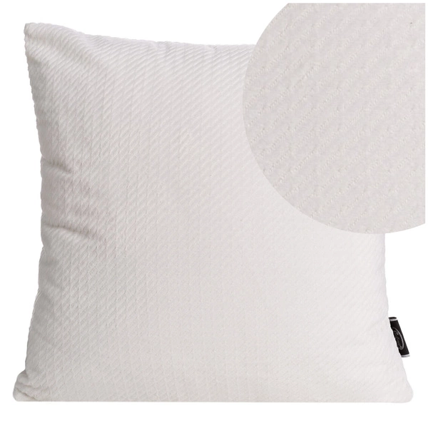 Decorative pillowcase Eliza is a perfect idea to complement the interior design. Fashionable white color and small embossed patterns distinguish the product with its original form. The soft, velvet fabric provides a pleasant rest after a hard day. The pillowcase can also be used as a head or back rest. A sewn-in zipper makes it take just a moment to change the decoration. The other side is smooth.