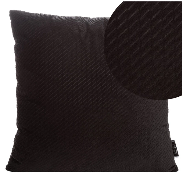 Decorative pillowcase Eliza is a perfect idea to complement the interior design. Fashionable black color and small embossed patterns distinguish the product with its original form. The soft, velvet fabric provides a pleasant rest after a hard day. The pillowcase can also be used as a head or back rest. A sewn-in zipper makes it take just a moment to change the decoration. The other side is smooth.