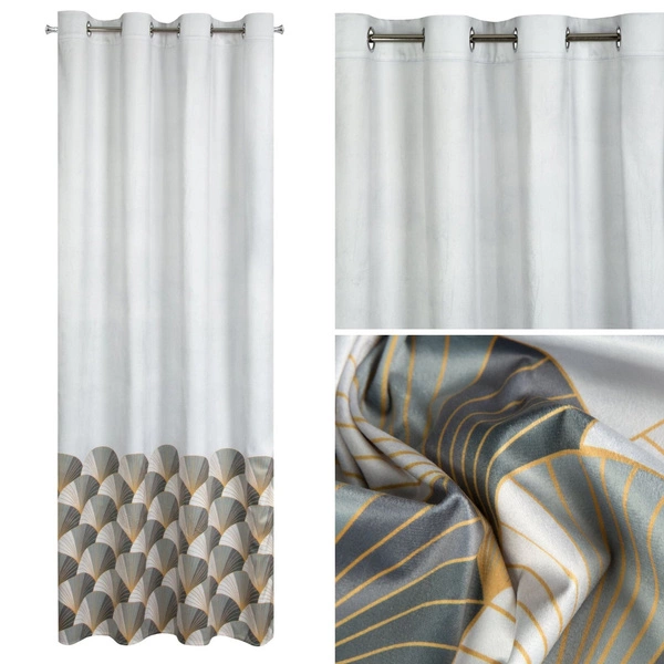 The curtain from the Gina collection was created for customers who prefer modern elegance. The product is distinguished by an innovative fan print on a silver background. The gold motif in art deco style creates a timeless finish to the curtain, while providing a stylish interior design. Practical grommets allow you to create a beautiful window decoration with aesthetic waves.
