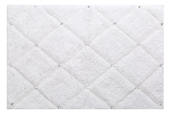 Cotton rug, was made of 100% natural fabric, which is soft to the touch and provides comfort. The product perfectly insulates the feet from the cool tiles in the bathroom and perfectly absorbs water. The white color decorated with a geometric pattern and glittering crystals is a combination of fashionable design, which will especially fit into interiors with glamour decor. As a result, it can also serve as a decorative element of a living room or other room.