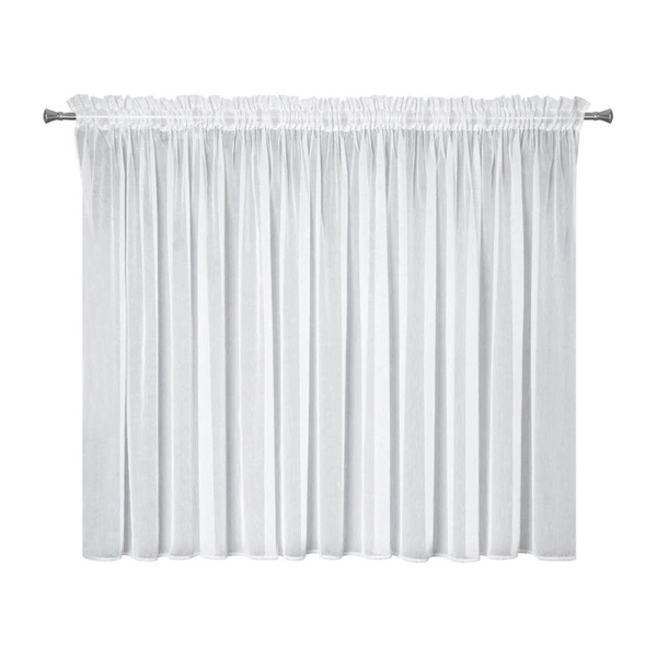 The curtain in white is a universal and timeless decorative element that fits into any interior design. It will be perfect for heavily sunlit rooms, as it limits excess light. The sewn-in ribbon with atunnel function allows you to easily hang the product on the jabs, hooks or a rod curtain rod. It looks beautiful on its own, as well as with patterned curtains.