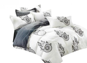 Cotton Satin Bedding in Flowers White A856 200x220PP 4 parts